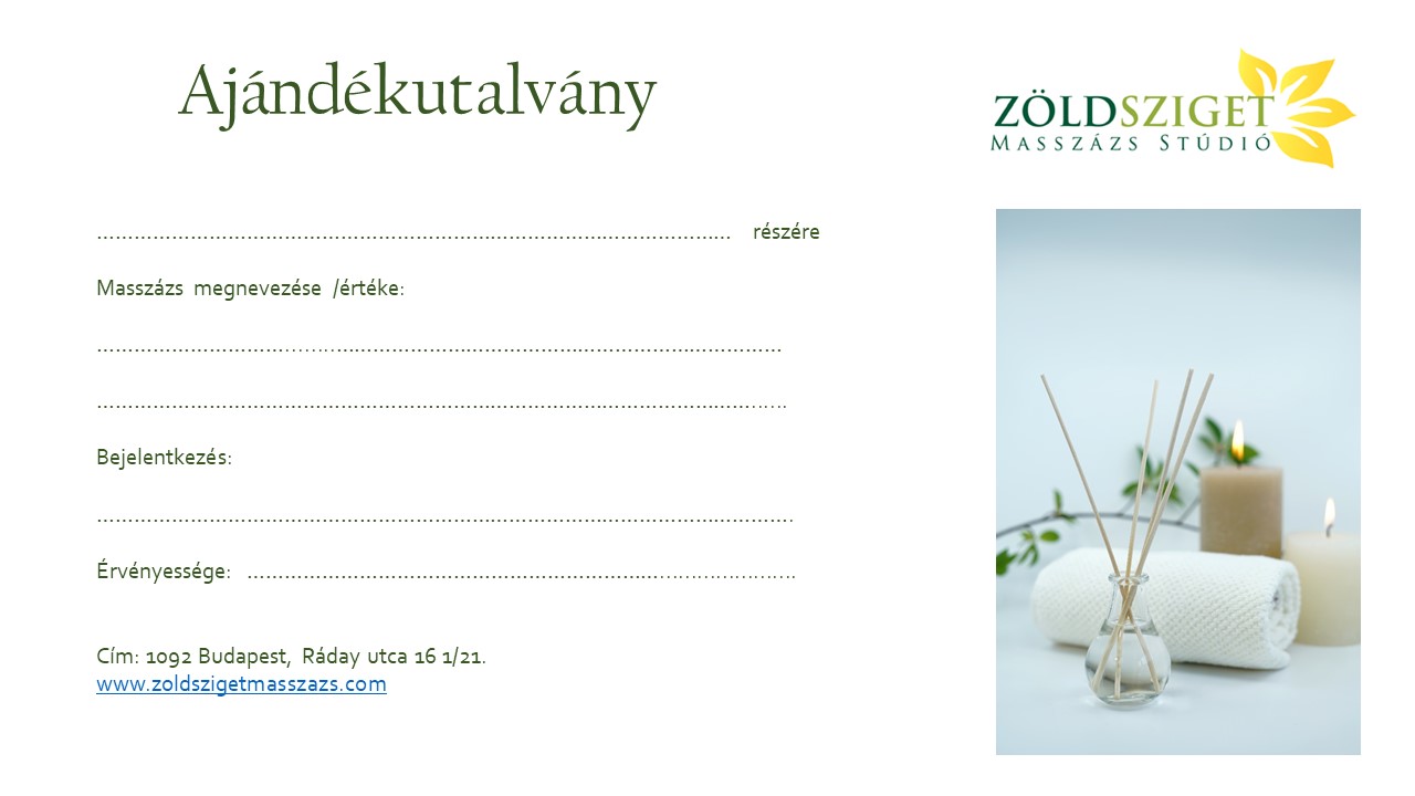Megrendeléskor add meg nekünk az ajándékozott nevét, a választott masszázst ( pl. 90 perces relax masszázs) vagy értéket (pl 30.000.- forint) és küld el a suranyireka@gmail.com címre vagy hívj az alábbi telefonszámon.